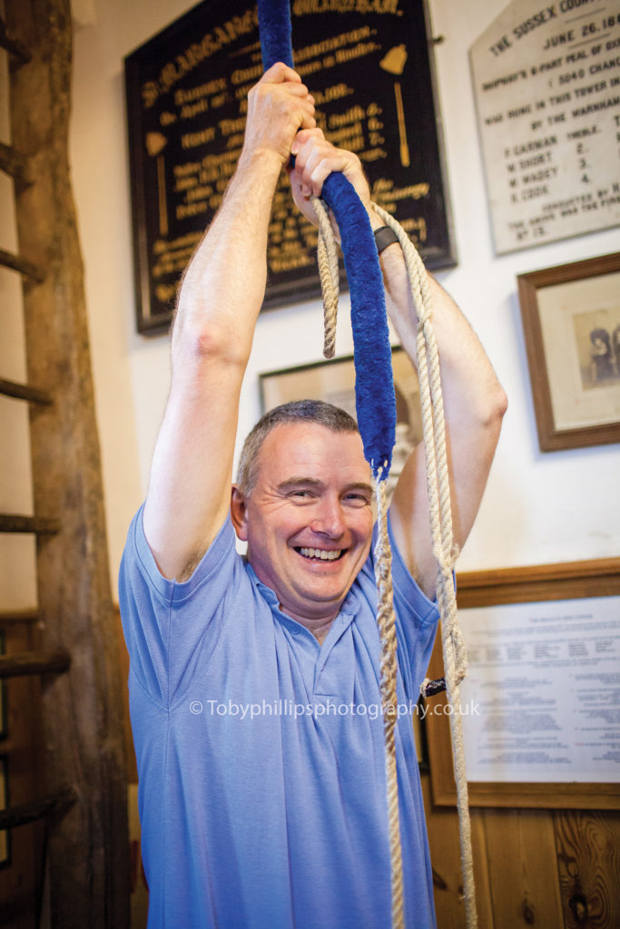 Fundamentally we are here to ring for the church and to call people to prayer and promote the church in the village. But for us there is always a temptation to ring methods which are technically more difficult and stretch the band. Part of my job as conductor is to make a call on that balance. On a Sunday we will try and ring methods that are safe, even if they are not too demanding. Bells should not clash together or have lumpy gaps. We go over to the Sussex Oak after ringing on a Thursday and there is a chap over there who often gives us his views on what we’ve been practicing!”