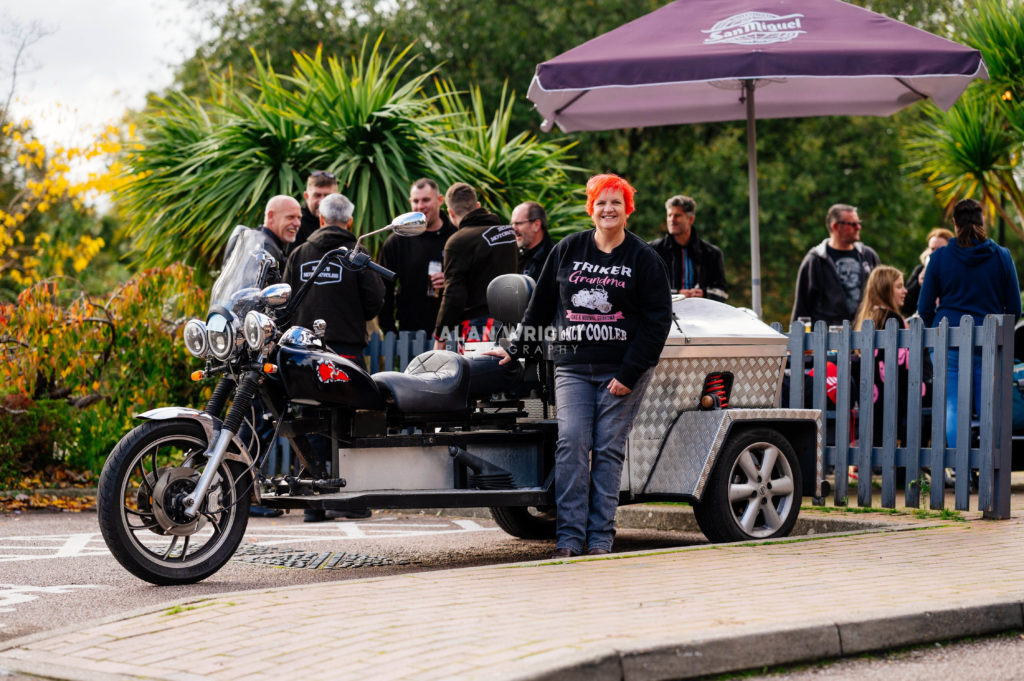 One of the most unusual bikes in the group is owned by Tess Fenter, a grandmother from Handcross. Tess is unable to operate a manual gearbox since she underwent a back operation, so now gets her riding kicks aboard an eye-catching trike. It was bought with manual gears and a 1 litre engine, but husband Nigel customised it into a 1.3 litre, automatic trike cruiser. Tess says: ‘I love the trike, as it has kept me on the road. I started riding a moped as a teenager and although I took a break to raise a family, returned to riding when I could, as it’s part of who I am. Wherever I go, the trike raises a smile and people always want to talk about it. This year, I rode it to the Isle of Man, towing a trailer! I went around the TT course, which was an amazing experience and something I’ve always wanted to do. For me, the social side of HMG is what makes it such a special group. They have given me the chance to get out at weekends. I often sit at the back as the “tail-end Charlie”, but always know the route so I catch up with the others eventually!’